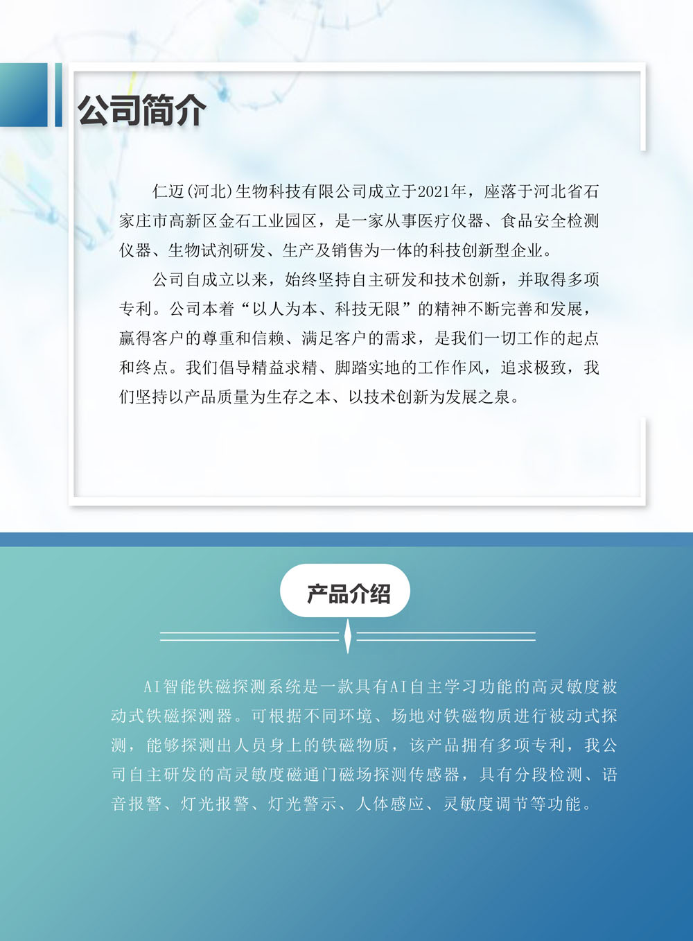 1、AI数字智能铁磁质探测系统,是一款AI数字智能环境学习探测器,可自主根据不同环境、场地对铁磁物质进行被动式探测,能够探测出患者或工作人员身上的铁磁物质,能准确地、彻底地、被动式进行探测。
